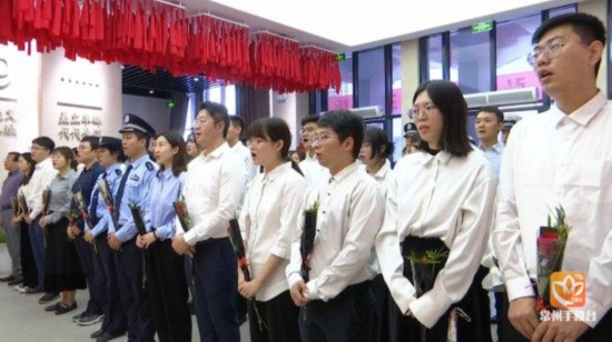 1921年,张太雷作为中共派往共产国际的第一位使者,启程赴苏俄前夕,给妻子陆静华写了一封情真意切的家书,表明“谋将来永远幸福”的决心。胸怀天下的家国情怀,打动了在场的每一个人。新婚夫妇们向全市青年发出倡议:缅怀革命先烈,铭记先烈功绩;弘扬优良传统,珍惜幸福生活;继承先烈遗志,共创美好未来!