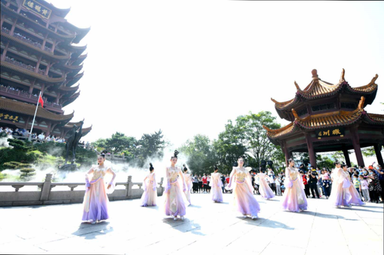中秋国庆佳节之际,在武汉最著名的景点黄鹤楼,景区内摩肩接踵,游人如织,一派喜庆祥和的节日景象。