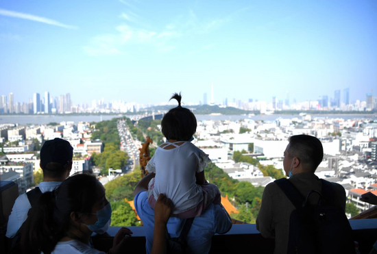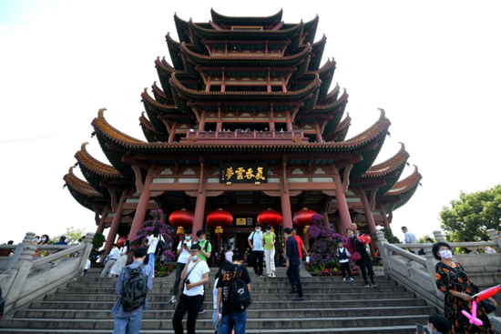 10月1日当日,黄鹤楼景区预约入园人数已达25000人的上限,因疫情防控需要,这一游客量约为往年同期的一半。