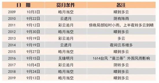 影响赏月的两大天气因素是多云和雨水。在上海往年的中秋天气中,这两位都不是常客。