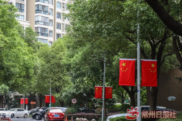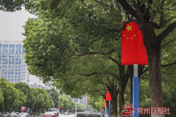 “多好看,国庆节的氛围很浓!”“每天都从这里过,今天还特意和国旗来了张合影。”……一面面五星红旗,激发了常州市民的爱国之情。