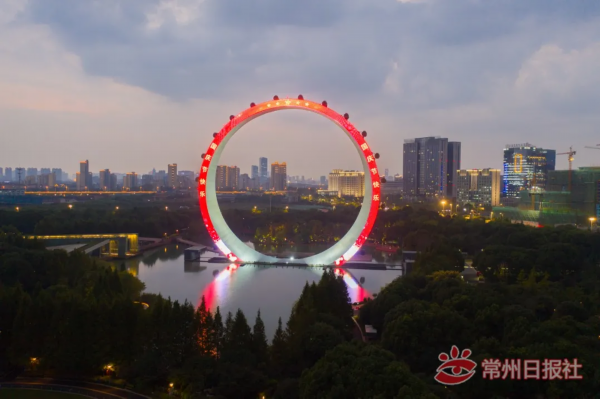 建筑为屏,科技为笔,灯光为墨。西瀛里、东经120景观塔、滆湖之星、文化广场等常州地标建筑9月28日晚上起正式开启国庆人文照明模式。