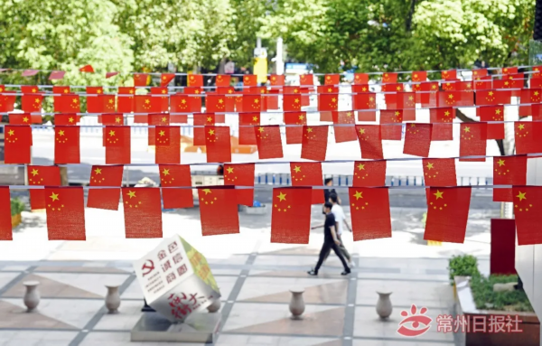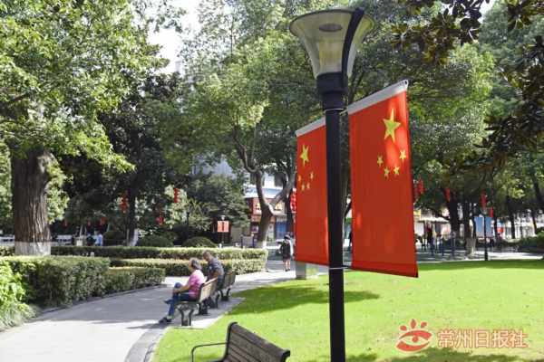 红旗飘飘、花团锦簇, 处处溢满浓浓的国庆氛围,表白祖国母亲,今天,常州红了!