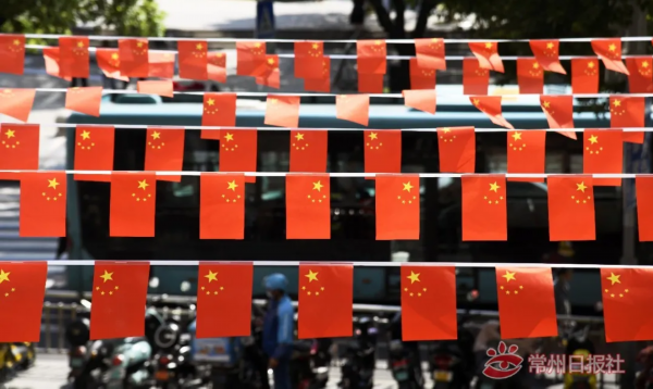 “国庆节,我们把国旗挂到门口,一是为了营造欢乐喜庆的节日氛围,另外也借此祝愿我们的祖国繁荣昌盛、越来越好!”常州市民表示。