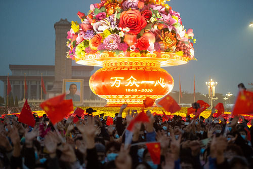 “2020年是一个让人刻骨铭心的年份,我一定要来天安门看升国旗庆祝国庆。”来自江苏徐州、有31年党龄的党员刘广胜说,“今天人民的安居乐业都是依靠祖国的繁荣富强,祝福祖国。”