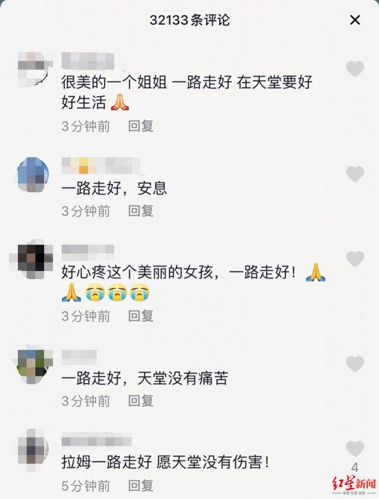 拉姆的不幸遭遇也牵动着亿万网友的心,在她去世后,很多网友在其抖音账号下留言,为她送别:“拉姆,愿天堂没有伤害,一路走好!”“虽然拉姆去世了,但她永远活在我们心里,希望法律严惩凶手”“好心疼这个美丽的女孩,愿天堂没有痛苦”……