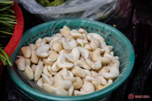 “来看看芋头,我家的是正宗的金坛红香芋,保证好吃,不好吃不要钱……”从菜场的肉类区往蔬菜区走,第一个蔬菜摊位的老板娘不时吆喝着,面前是十来个小盆,里面盛着剥了皮的芋头。