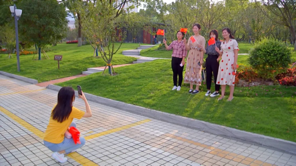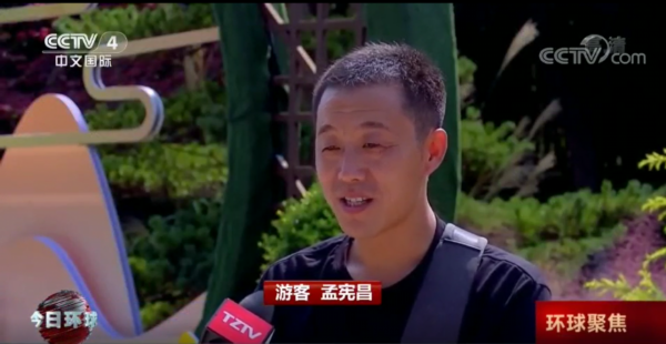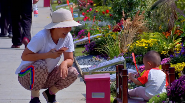 游客孟宪昌:“我们和家人一起来到公园看园艺展,制作得非常精美,祝愿我们的祖国越来越美好。”