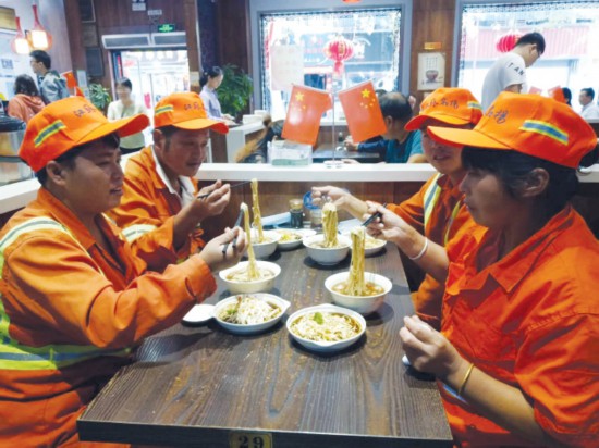 一碗“国庆面”,一生“爱国情”。李娟娟说:“今年抗击新冠肺炎疫情展示了中国人民举国同心、命运与共的伟大精神,有这样的精神力量,一切困难我们都不怕,祝福祖国更加强大。”市交警一大队警察倪思远说:“维护交通秩序、守护百姓安全是交警的天职,吃一碗‘国庆面’,祝愿国泰民安。”