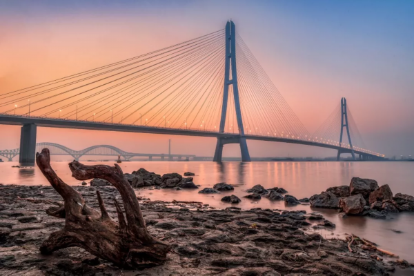 大胜关大桥是中国第一座钢塔斜拉桥,也是世界第一座弧线形钢塔斜拉桥,2005年10月7日正式通车。
