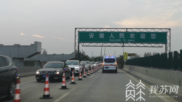 当天5点13分,民警驾驶警车和救护车会合。此时,宁合高速正在修路,南京往安徽方向全线堵车,但反向较为顺畅。民警决定拉响警笛驾驶警车开道,从逆向车道和封闭维修的道路上驶往安徽。