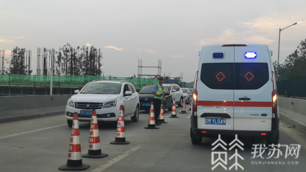 10月1日下午5点03分,南京交警高速十大队接到一辆救护车医务人员报警。这辆救护车从盐城转运一颅脑出血病人至外地救治,碰上了大堵车堵在了宁合高速南京段。当时病人情况突然不稳定,车上的氧气只够使用三四个小时,急需送至附近医院先行治疗。
