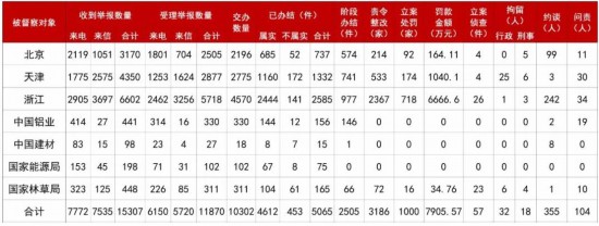 截至10月1日,各督察组共收到群众举报15307件,受理有效举报11870件,经合并重复举报后转办10302件。已办结5065件,阶段办结2505件;立案处罚1000家,罚款7905.57万元;立案侦查57件,拘留50人;约谈党政领导干部355人,问责104人。