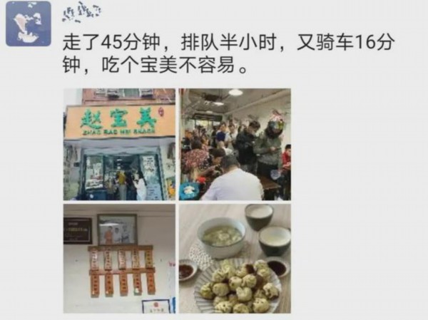 “排了半个多小时才吃上,再晚点来,人都排到门外面去了。吃个煎包真不容易啊。”