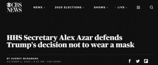 CBS:卫生与公众服务部长为特朗普不戴口罩的行为辩护