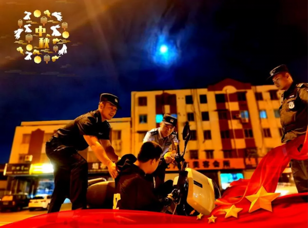 接到警情的值班民警立即开车前往现场处置,窗外虽有圆月,但为了更多群众的安宁大团圆,他只能舍弃自己与新婚妻子的小团圆。