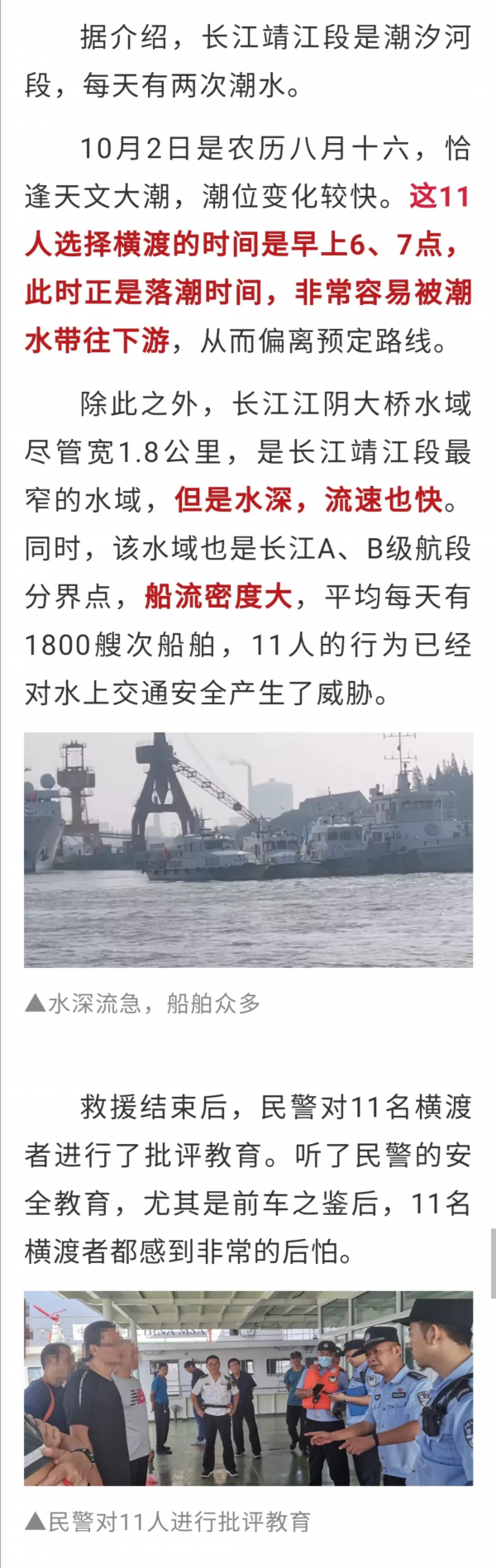 原来,这11人由于错误估计了江水流速和潮位的影响,在下水后不久就偏离了预定横渡路线,并且在途中体力不支,只得一路随波而下。