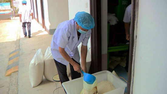 袁场村村民伏建平将家里土地流转出来,现在每天都会到基地打工,收入比以往更加可观。“土地流转出去,有地租,分红高一些。米比较好卖,卖得多,我们分红多,干劲也足。”