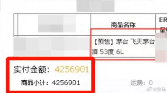 没想到,西安那边有一个熊孩子厉害了!他一口气买了100瓶贵州茅台,而且每瓶是42999元,支付总额近430万元...