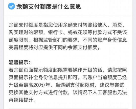 对上述事件,招联金融首席研究员董希淼对中国经济网记者表示,支付宝应该合理设置消费限额,因为支付宝是非银行支付,而非银行支付的定位是小额零售支付。