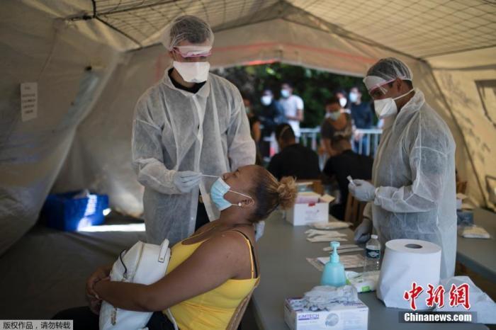 当地时间9月24日,法国马赛,一名妇女在接受新冠肺炎检测。