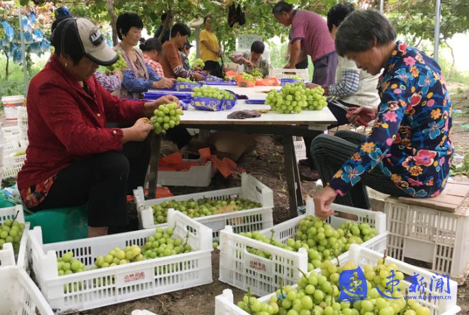 泗阳县爱园镇松张口社区农民在葡萄种植基地忙碌