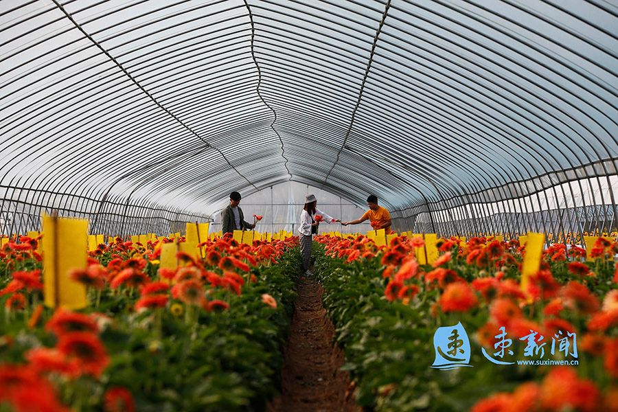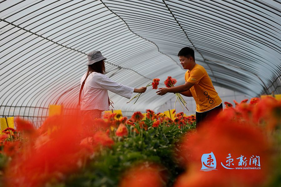 泗洪县界集镇后钟洼村村民陈超和杜美英大学毕业后,夫妻俩利用在大学学到的农学知识,去年在村里流转50亩土地搭建25个“帮扶大棚”种植非洲菊,釆取“基地+农户”模式,吸收20名低收入农民在基地务工。通过农业资源与乡村旅游相融合,实现种、产、销、观光一体化经营。非洲菊销往本省和河南省等,亩均纯收入突破3万元,务工人员人均年收入超过2万元。