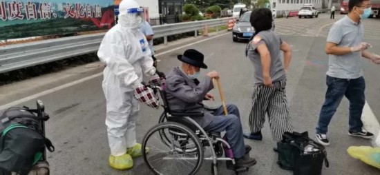 9月22日,是朱宁第4次随车保障。随车前一天下午接到领导通知,转运乘客中有一名94岁高龄的刘姓老爷爷,行动不方便,合并冠状动脉粥样硬化性心脏病、慢支肺气肿、老年性耳聋,1年又前因急性心肌梗死植入2枚支架。得到这一消息后,朱宁立刻做好应急预案,仔细核对随车相关药物,检测随车医疗设备。转运当天,当发现刘爷爷由家人用轮椅从转运基地推出时,他主动上前询问情况,评估病情,并致且协助患者上车。由于刘爷爷听力不好,直接沟通困难,待刘爷爷上车坐稳后,朱宁又仔细的向其家属详细了解情况,让家属询问患者有无胸痛、胸闷、呼吸困难等不适,并给他监测体温、脉搏、血氧饱和度、血压等指标,充分评估病情,幸运的是刘爷爷无明显不适,生命体征无明显异常。由于老年人发病症状不明显,并且基础疾病较多,随时可能出现病情变化,为了方便及时观察情况,他选择坐在刘爷爷隔壁座位。大约开车3个小时,刘爷爷要小便,因为不习惯穿尿不湿刘爷爷拒绝穿尿不湿,后来在家属的协助安慰下,将刘爷爷搀扶至指定区域解小便。距离终点站还有1个小时的时候,刘爷爷说饿了,想吃面条,由于大巴车上条件有限,无法提供,在与随车公安宋晨的共同安慰下,老爷爷说再坚持坚持,暖心的司机提供了一杯热水,老爷爷脸上露出了笑容。最后,刘爷爷顺利抵达徐州。