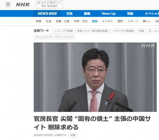 不仅如此,他还对中国发起指责,宣称:“钓鱼岛是我国固有领土,我们认为中方没有为其建立网站的‘资格’。对于中方完全基于自己立场的主张,我们是完全不能接受的。”
