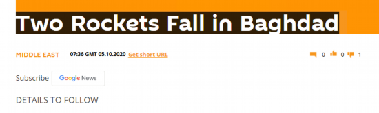 【环球网快讯】俄罗斯卫星网刚刚消息,两枚火箭弹落在伊拉克首都巴格达。