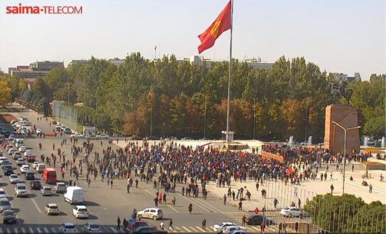 当地时间5日,社会民主党、爱国者党和远征党等吉尔吉斯斯坦反对派在首都比什凯克市中心的阿拉套广场组织集会,反对于前一天举行的议会选举初步结果。