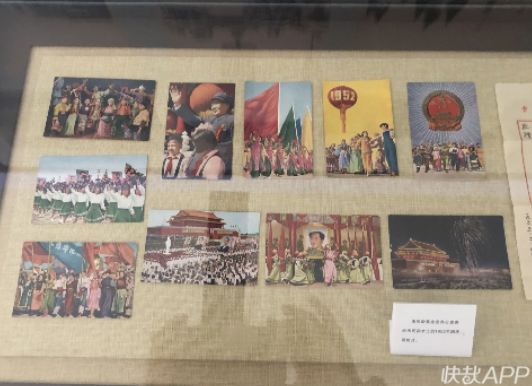 在这一展区的第一单元,有一组市民孙女士捐展的1952年的国庆明信片很受关注。