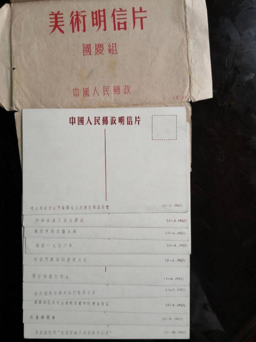 随信寄来的明信片共10张,内容是1952年国庆时的场景——