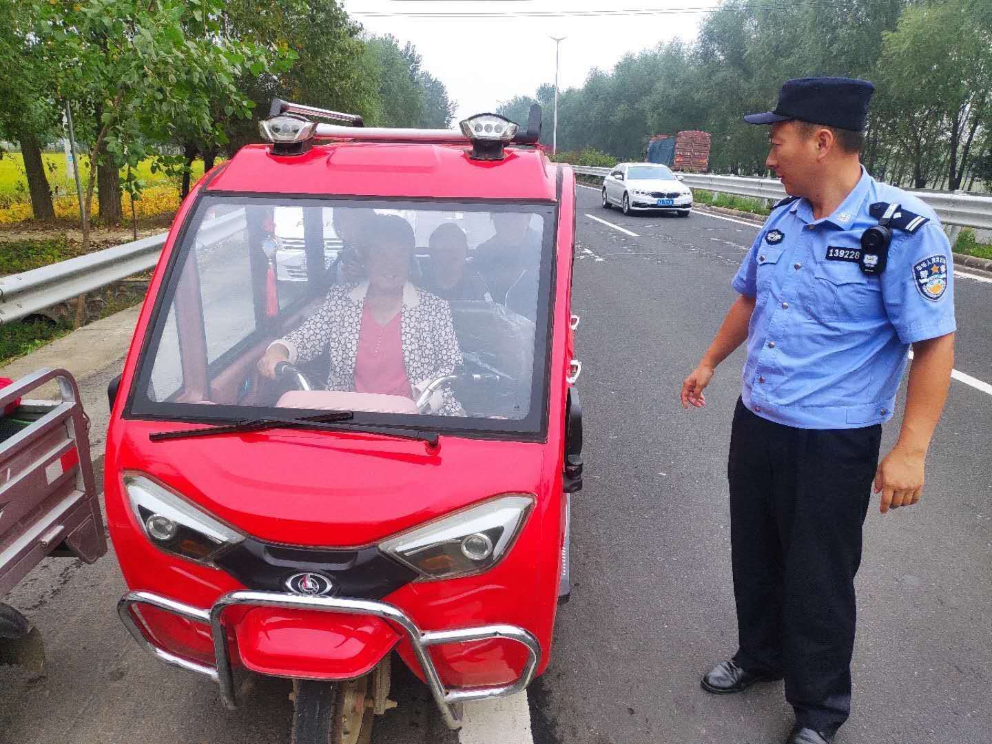 “节假日期间,车流量非常大,电动三四轮车违规载人,特别是‘一车多人’的行为,有很大的风险,我们是逢车必查,全力消除动态交通安全隐患,保障道路安全。”10月5日上午,正在路口执勤的宿迁市公安局交警支队三大队侍岭中队民警张辉说。