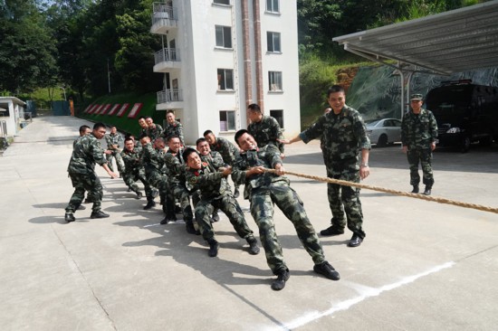 中队官兵正在开展拔河比赛 黄泽聪摄