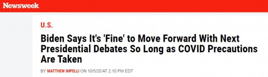 【环球网报道 记者 侯佳欣】“如果科学家们说它是安全的,距离也是安全的,那我认为这没问题。”据美国《新闻周刊》报道,当地时间10月5日,美国民主党总统候选人拜登前往佛罗里达州参加竞选活动之前告诉记者,如果科学家们认为安全可行,他认为举行第二场总统辩论“没问题”。