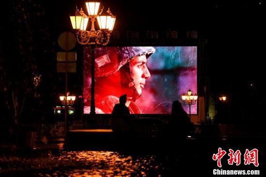 当地时间10月5日,亚美尼亚埃尔温街头大屏幕播放爱国影片。当日,亚美尼亚与阿塞拜疆在纳戈尔诺-卡拉巴赫(纳卡)地区的军事冲突进入第9天,造成数百人死伤,但双方军事冲突并未停歇,反而持续升级,停火前景显得更加渺茫。
