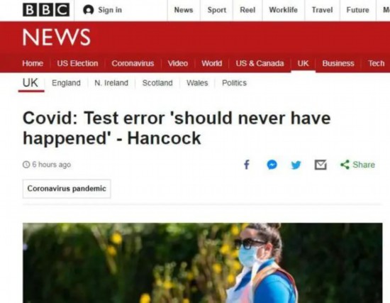 据英国广播公司(BBC) 5日报道,英国卫生大臣表示,由于出现“技术问题”,英国有近1.6万例新冠肺炎病例未被报告,而这样的技术故障“本不应该发生”。此事件意味着,尽管这些检测结果呈阳性的感染者被告知了结果,但他们的密切接触者并未被英国防疫部门追踪。