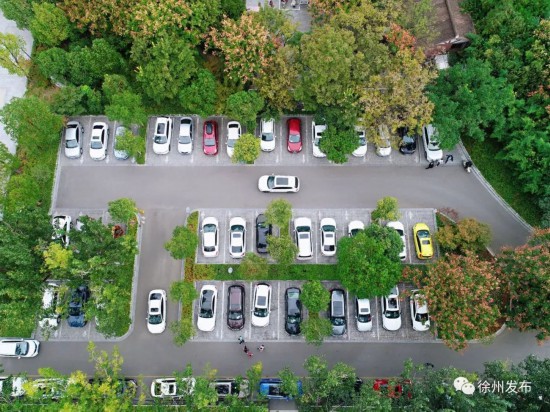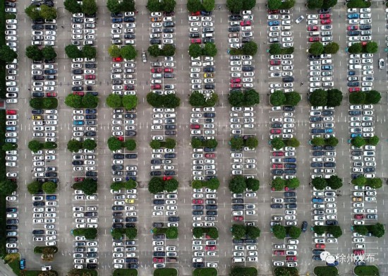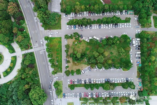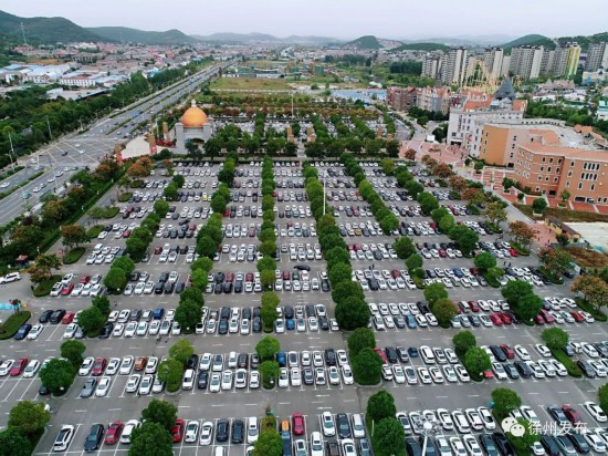 徐州乐园停车场内车辆整齐停放。