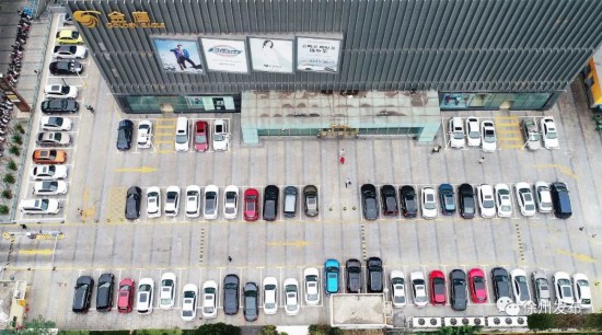 金鹰二店停车场,假期里出行购物的车辆整齐停放。