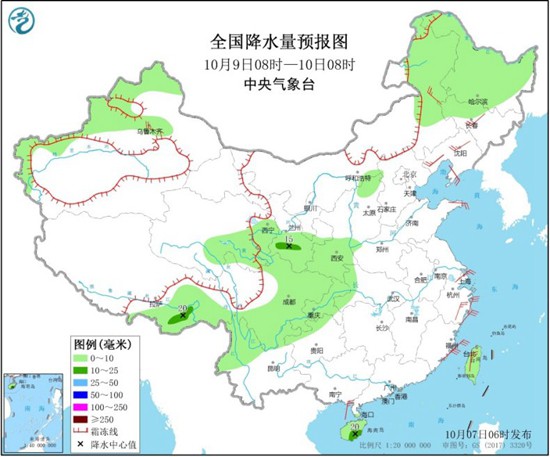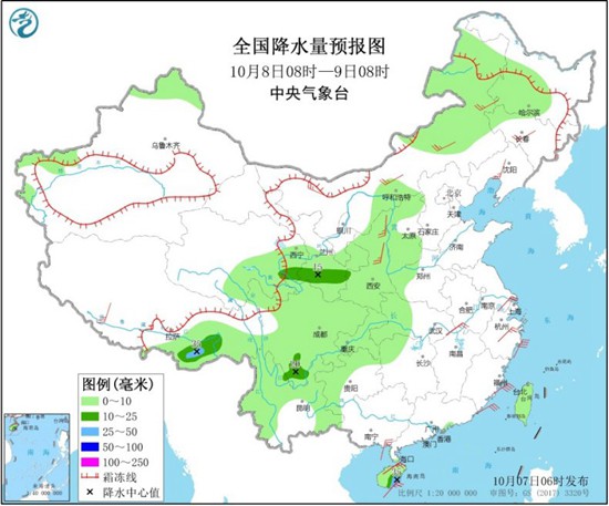 中国天气网讯 今天(10月7日),随着冷空气逐渐收尾,我国中东部大部地区开始进入“升温通道”,预计甘肃、宁夏、陕西、河南、湖北、四川等地的部分地区升温都会比较明显。同时,全国也迎来了近期降水最少的一天,不过西藏东南部、云南西部和海南岛东南部局地仍将有大雨或暴雨现身。