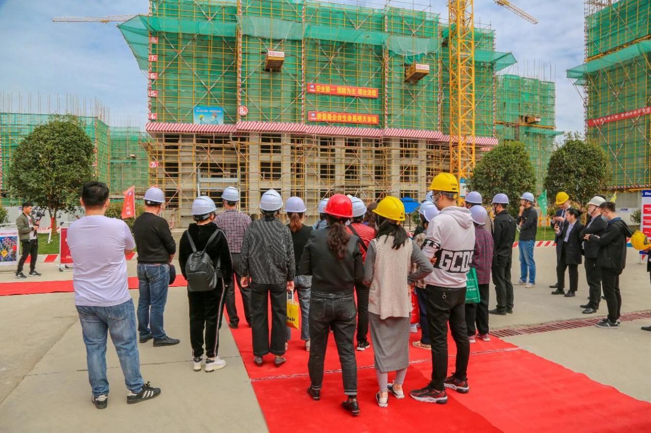 在工作人员的引导下,业主们携带好安全帽,由置业顾问的引领和陪同,有序进入展示区进行参观,真切感受花语馨城对于建筑品质的严格把控。