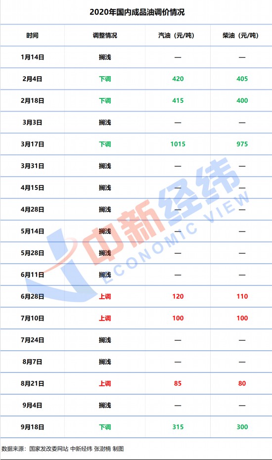 中新经纬客户端注意到,今年以来,国内成品油价格已经历18次调整,其中11次搁浅、4次下调、3次上调,汽、柴油价格分别累计下调1860元/吨、1790元/吨。其中,有六次因触发“地板价”保护机制未能调整。