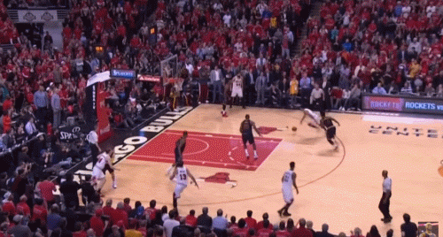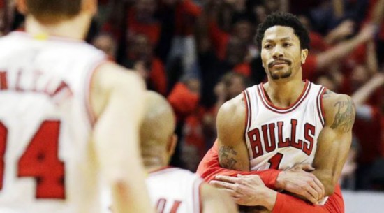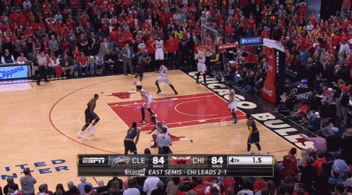 罗斯没有浪费这次机会,他在三分线外开始加速,在到达三分线时再一次变向不变速,一把突过香珀特直奔篮圈而去,篮下过来协防的只有詹姆斯一人,双方都充分起跳,作为过去十年来最擅长追帽小后卫的詹姆斯,这一次尝试却无功而返,罗斯上篮成功,公牛扳平比分。