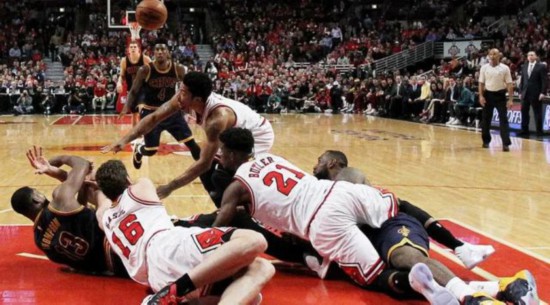 在芝加哥的第一场比赛双方就合力贡献了一场从头咬到尾的打铁大战,骑士投丢了50个球,公牛则投丢了56个,双方命中率都低于40%,48分钟内17次打平,19次交替领先。