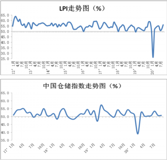 中国物流与采购联合会发布的2020年9月份中国物流业景气指数为56.1%,较上月回升3.9个百分点;中国仓储指数为50.8%,与上月持平。