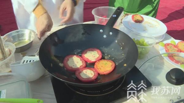 参赛选手周家燕介绍:“今天我做的这道菜名叫一片丹心,这一片丹心是用西红柿、还有面粉、还有鸡蛋糊搅拌成我们的内心,它的颜值非常高,做的时候特别讲究,因为我们的火不能大也不能小。”