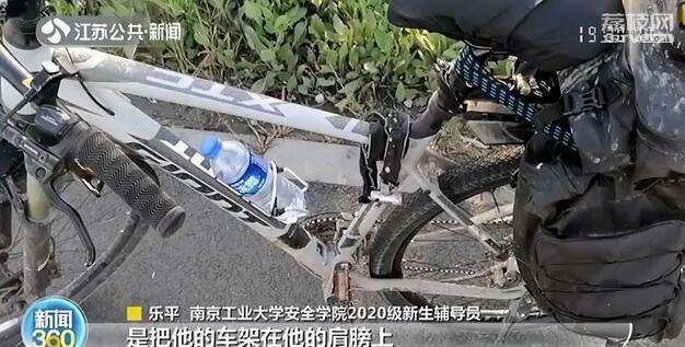 刘子航的辅导员乐平得知他要骑车报到的事情,每天都在QQ上关注他的行程和安全:“骑行济南有一个路段,他和我讲说那边的路况非常不好,因为在修路,大型的履带车把路压得非常糟糕,他是把车架在肩膀上,一路走过来的。”