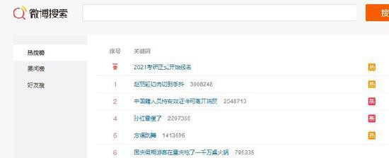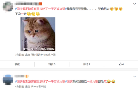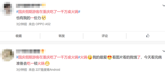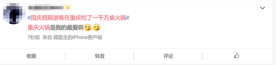 截至10月10日10:30,《国庆假期游客在重庆吃了一千万桌火锅》在新浪微博热搜榜上排名第6。