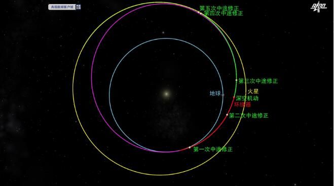 后续,探测器将在当前轨道飞行约4个月后与火星交会,其间将实施两到三次轨道中途修正。